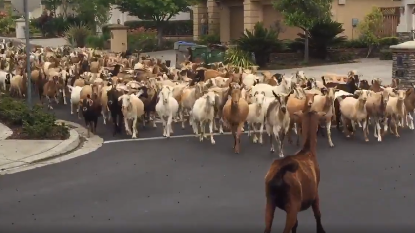 Apparently no longer content to shelter in place, about 200 goats came out of their enclosure and went a short distance through a San Jose locality on Tuesday evening.